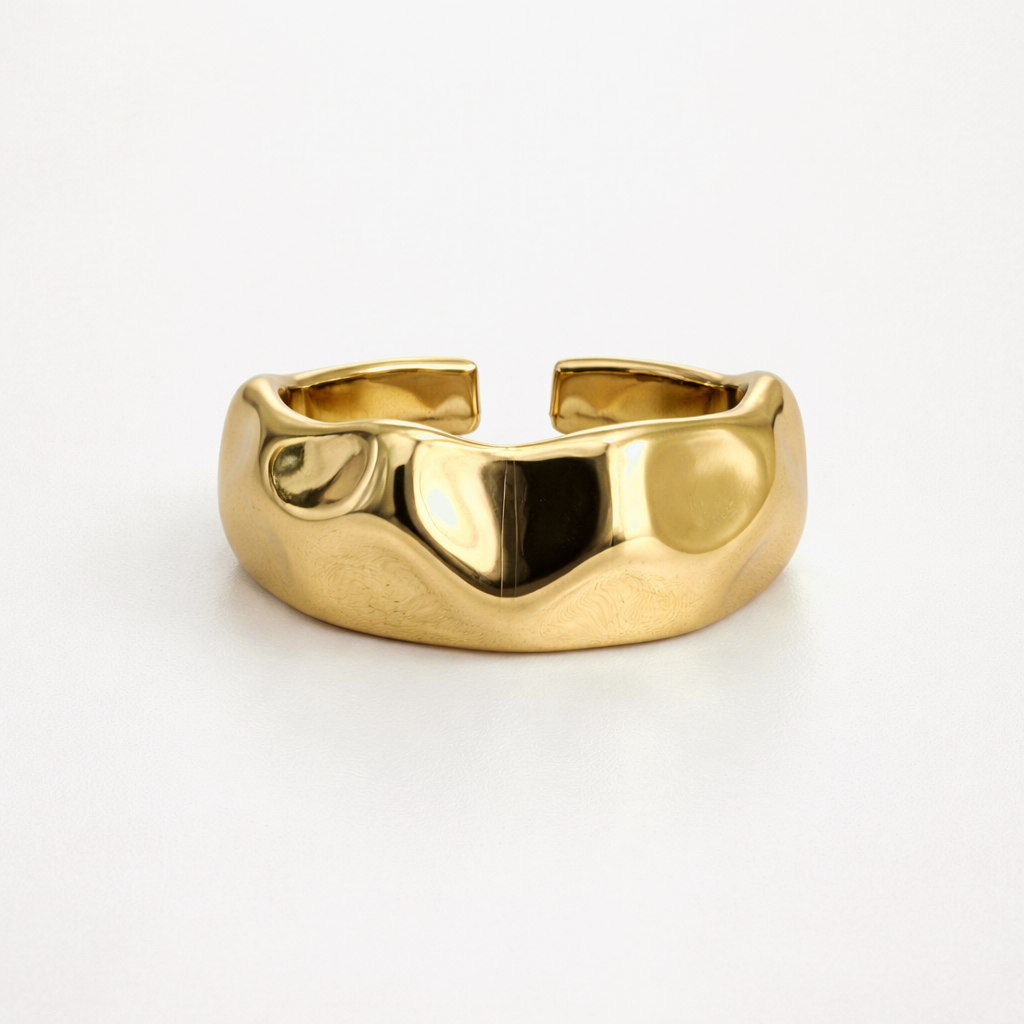 Anel confeccionado com metal, banho triplo de ouro e camada de verniz italiano que garante o brilho e hipoalergêrnico. Anel regulável do tamanho 17 até o tamanho 18.