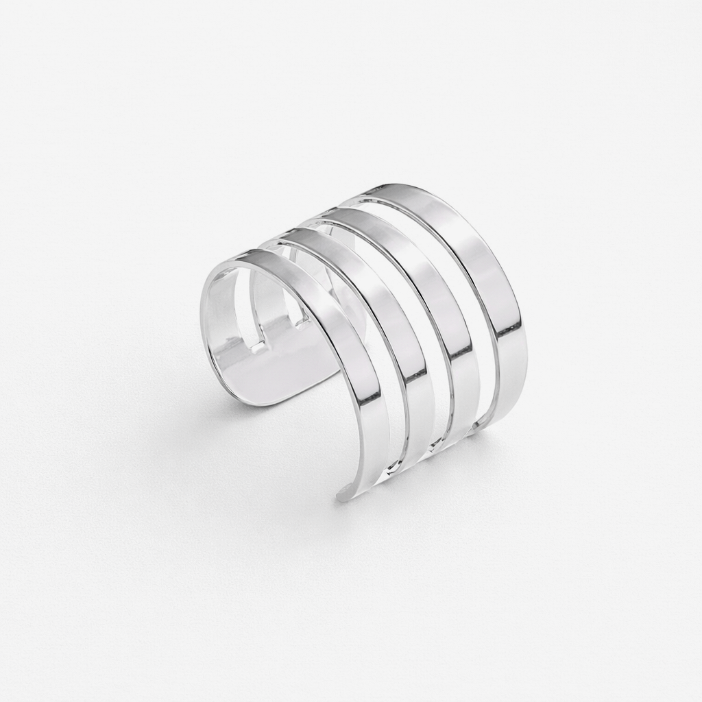 Anel com banho de prata com camada de 30 milésimos, mais camada de verniz.