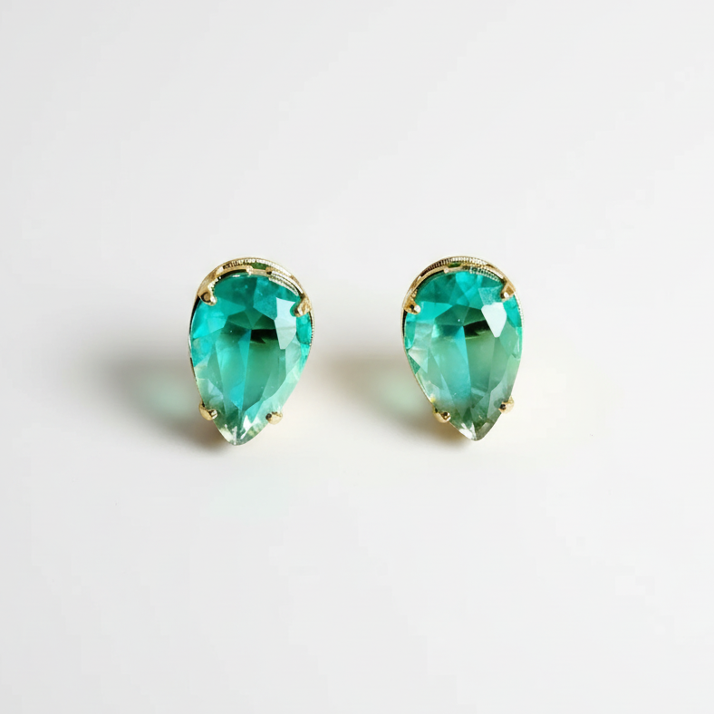 Brinco gotinha turmalina no ouro com cristal gota cravado.
