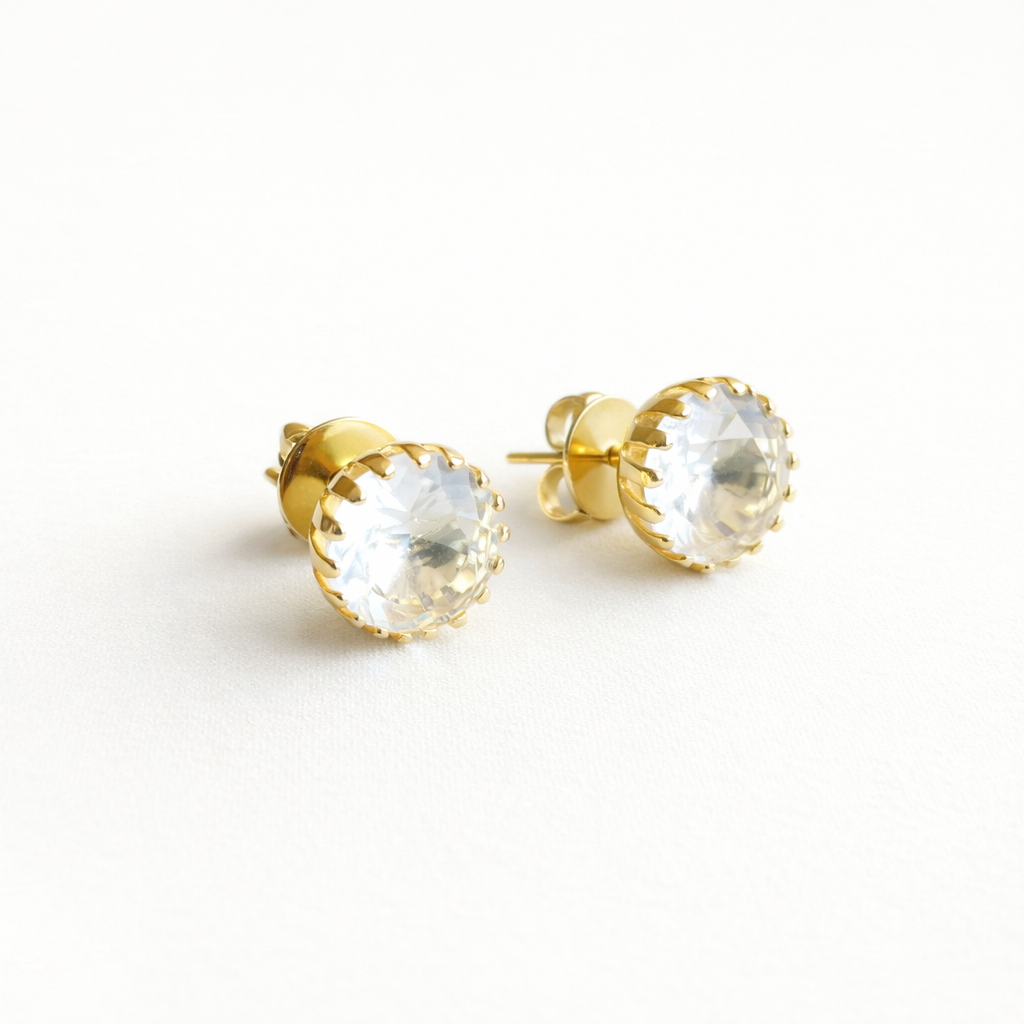 Brinco folheado níquel free, banho de ouro 18k com zirconia moeda cristal 10mm.
