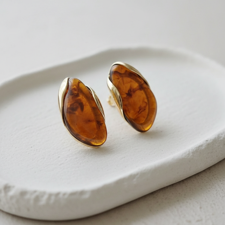 Brinco confeccionado em resina na cor tartaruga. e metal banhado a ouro.