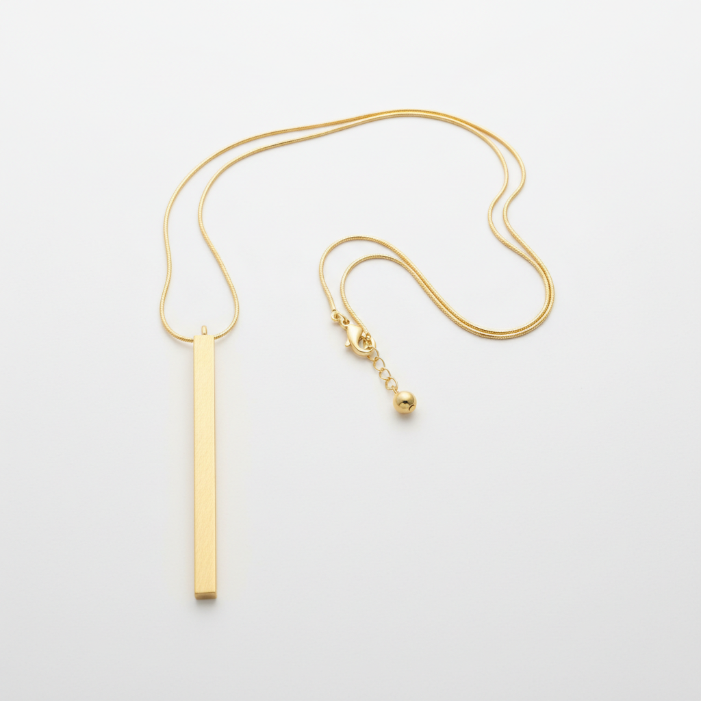 Colar longo com banho de ouro fosco, metal nobre feito a mão.