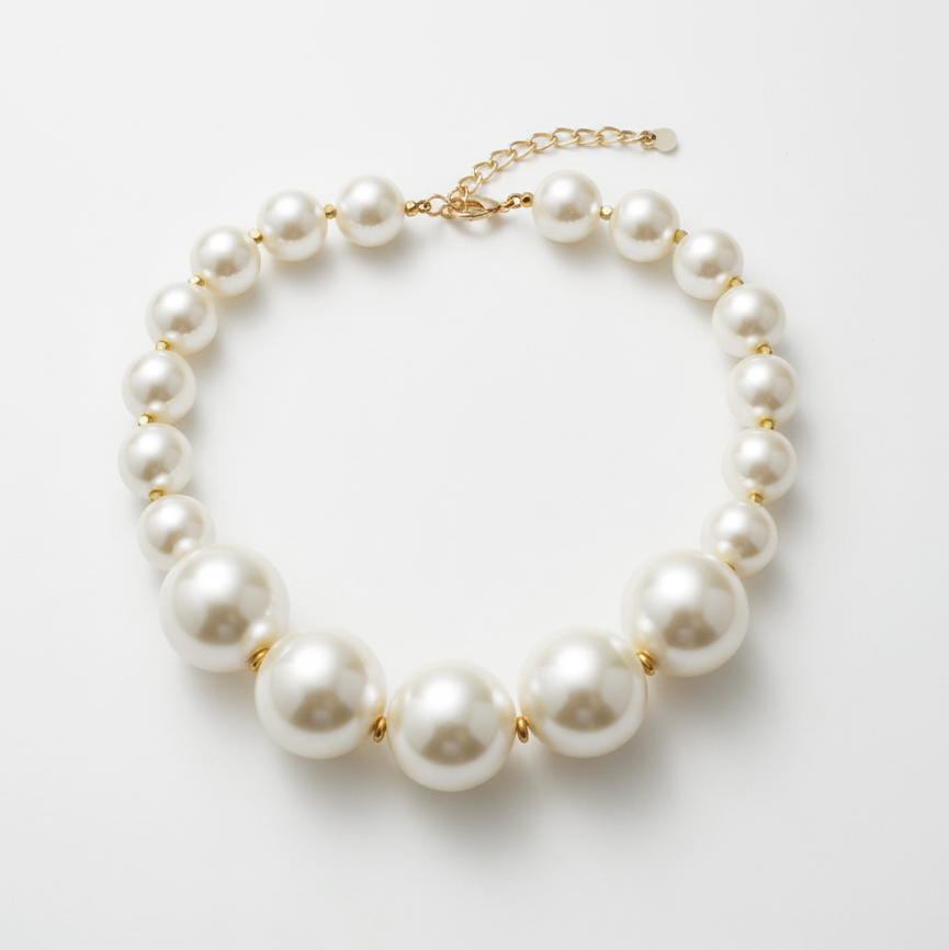 Colar confeccionado com pérolas sintéticas. Comprimento 45cm mais 6cm de alongador.