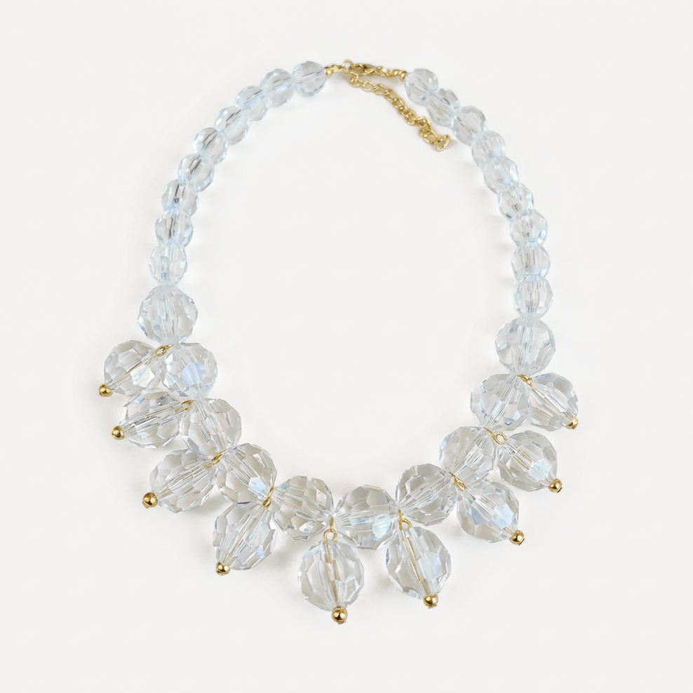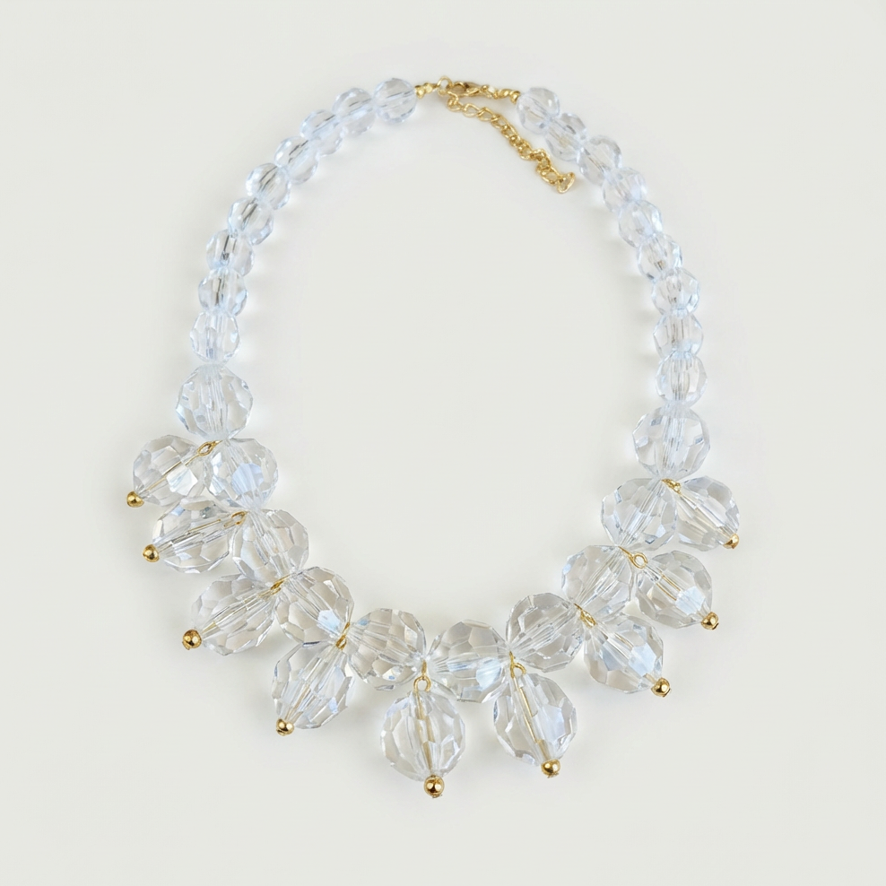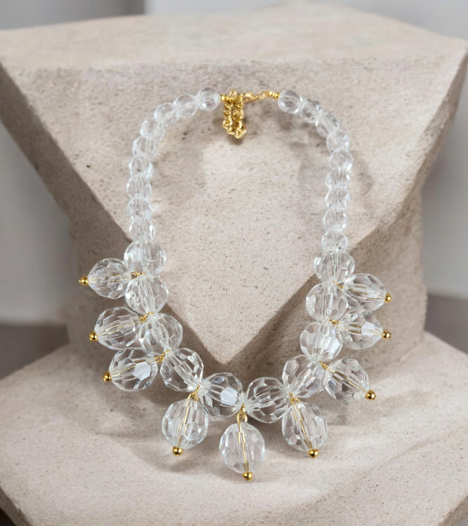 Colar em cristal acrílico facetado com entremeios banho flash de ouro 18k. Níquel free.