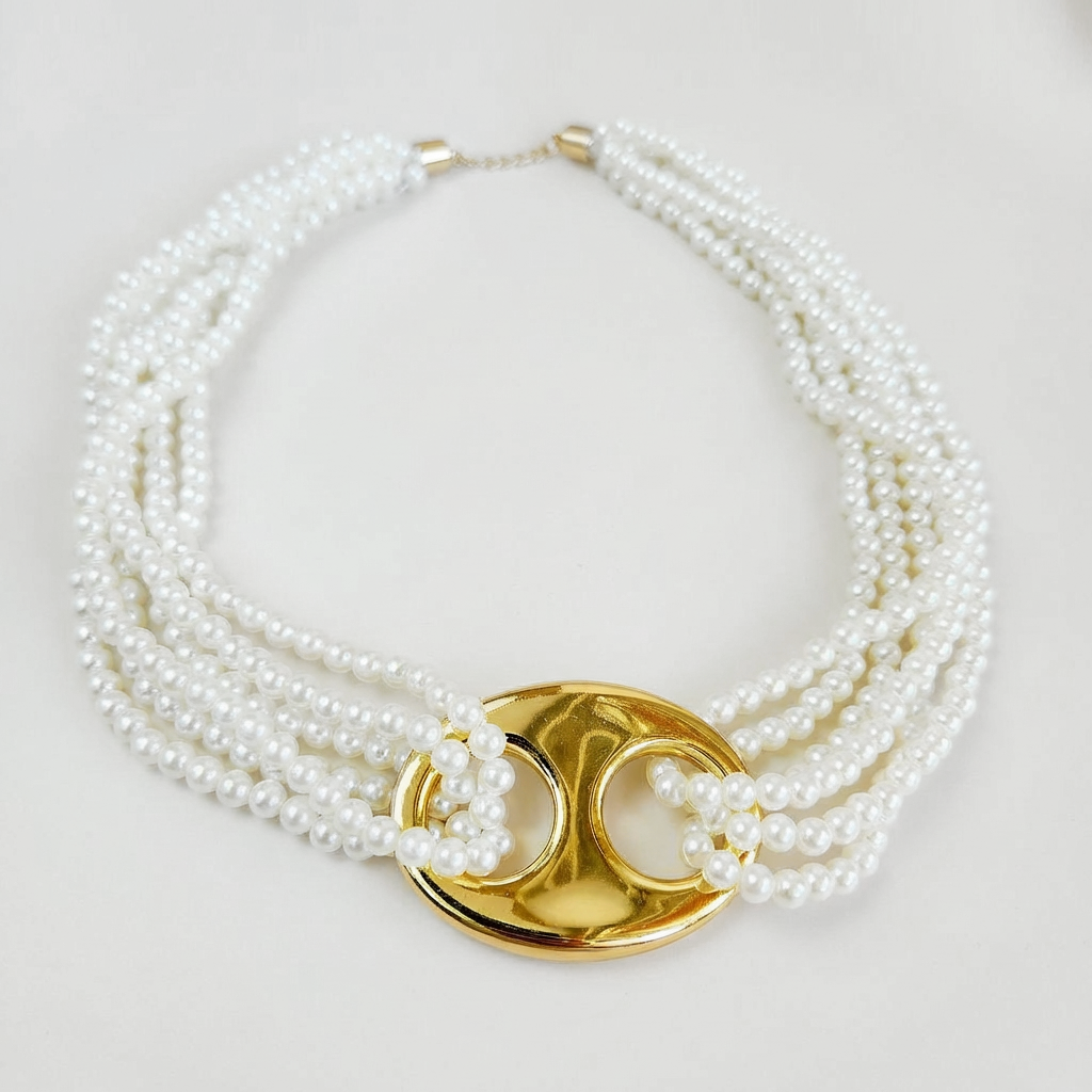 Colar em pérolas ABS e metal com banho flash de ouro 18k. Níquel free.
