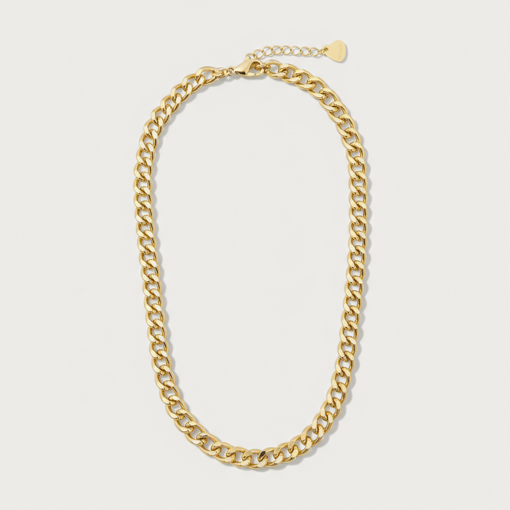 Colar com banho de ouro 1 milésimo, mais camada de verniz.