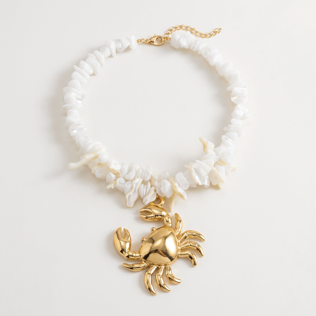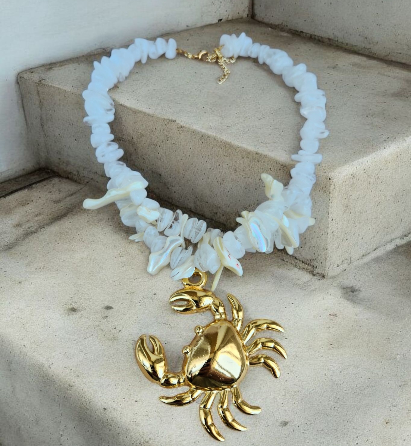 Colar confeccionado com resinas brancas e metal com banho de ouro 18k.
