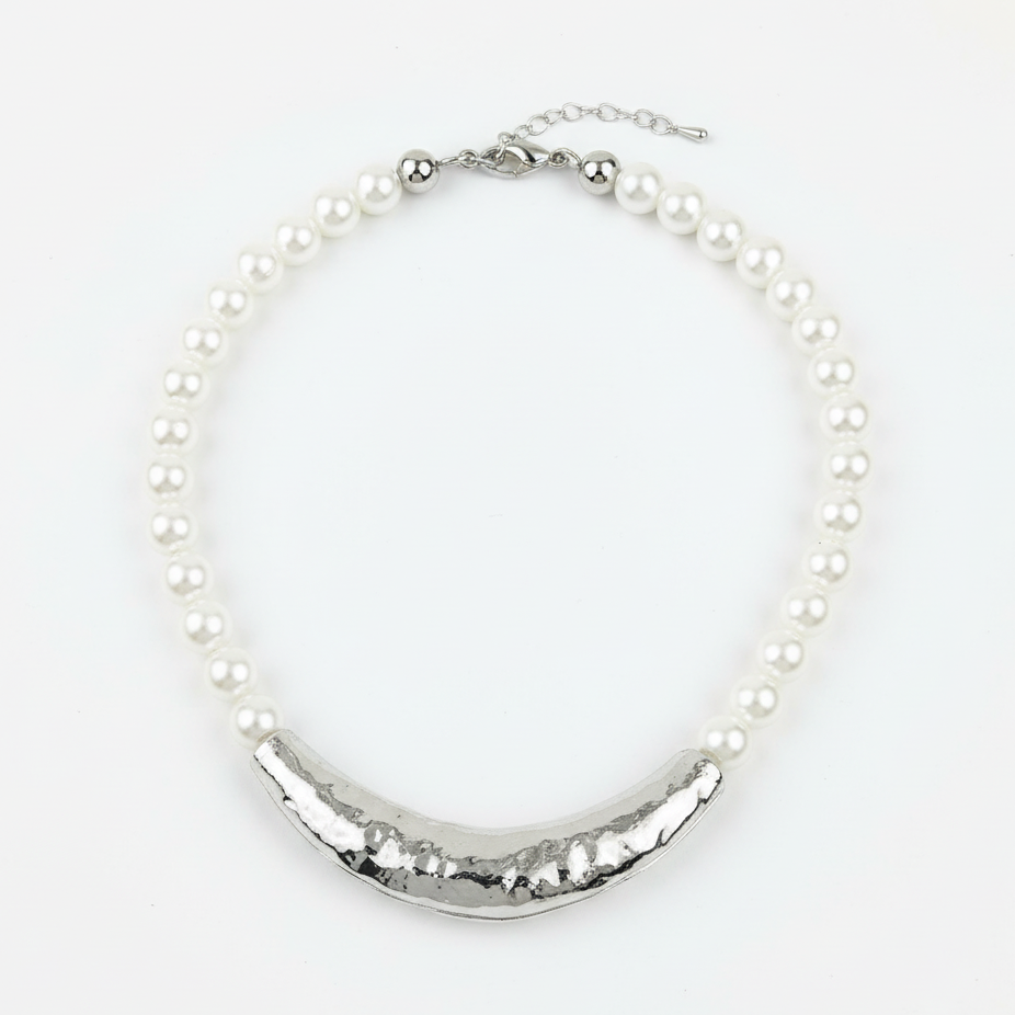 Colar confeccionado com pérola ABS e metal, banho triplo de prata e camada de verniz italiano que garante o brilho e hipoalergêrnico.