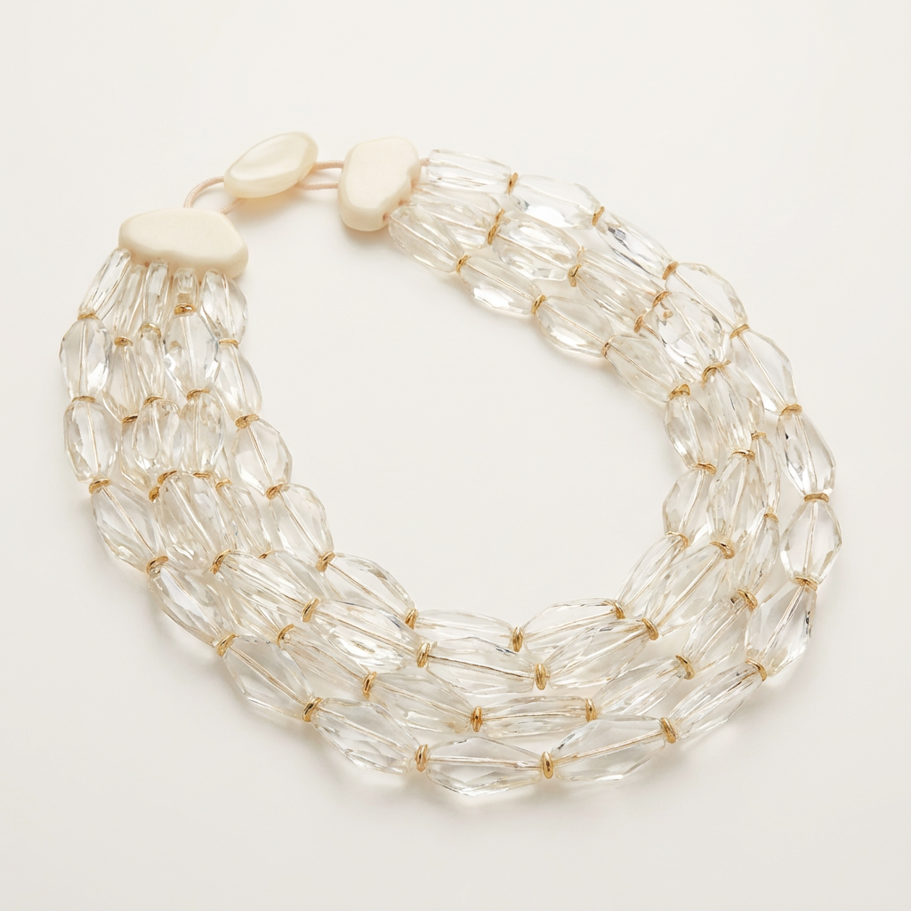 Colar em resina acrílica facetada com entremeios banho flash de ouro 18k e fio encerado. Níquel free.