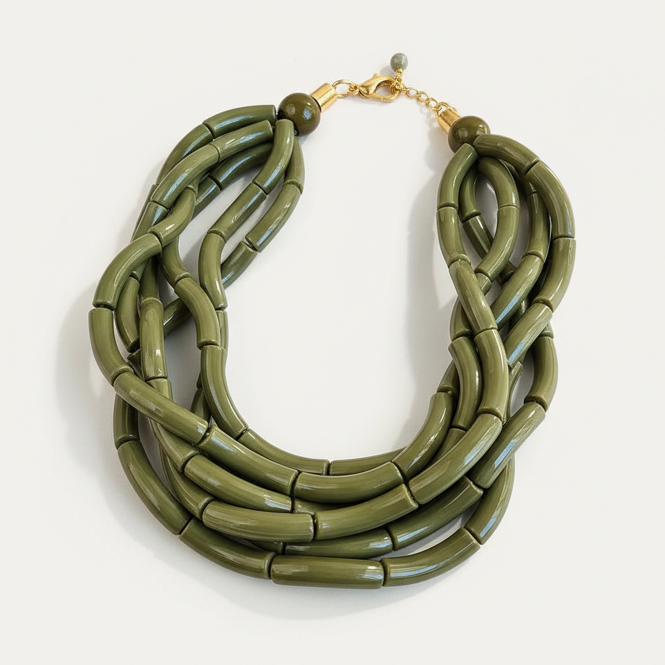 Colar confeccionado com fio encerado, resina, metal com banho triplo de ouro 18K e camada de verniz italiano que garante o brilho e hipoalergêrnico.