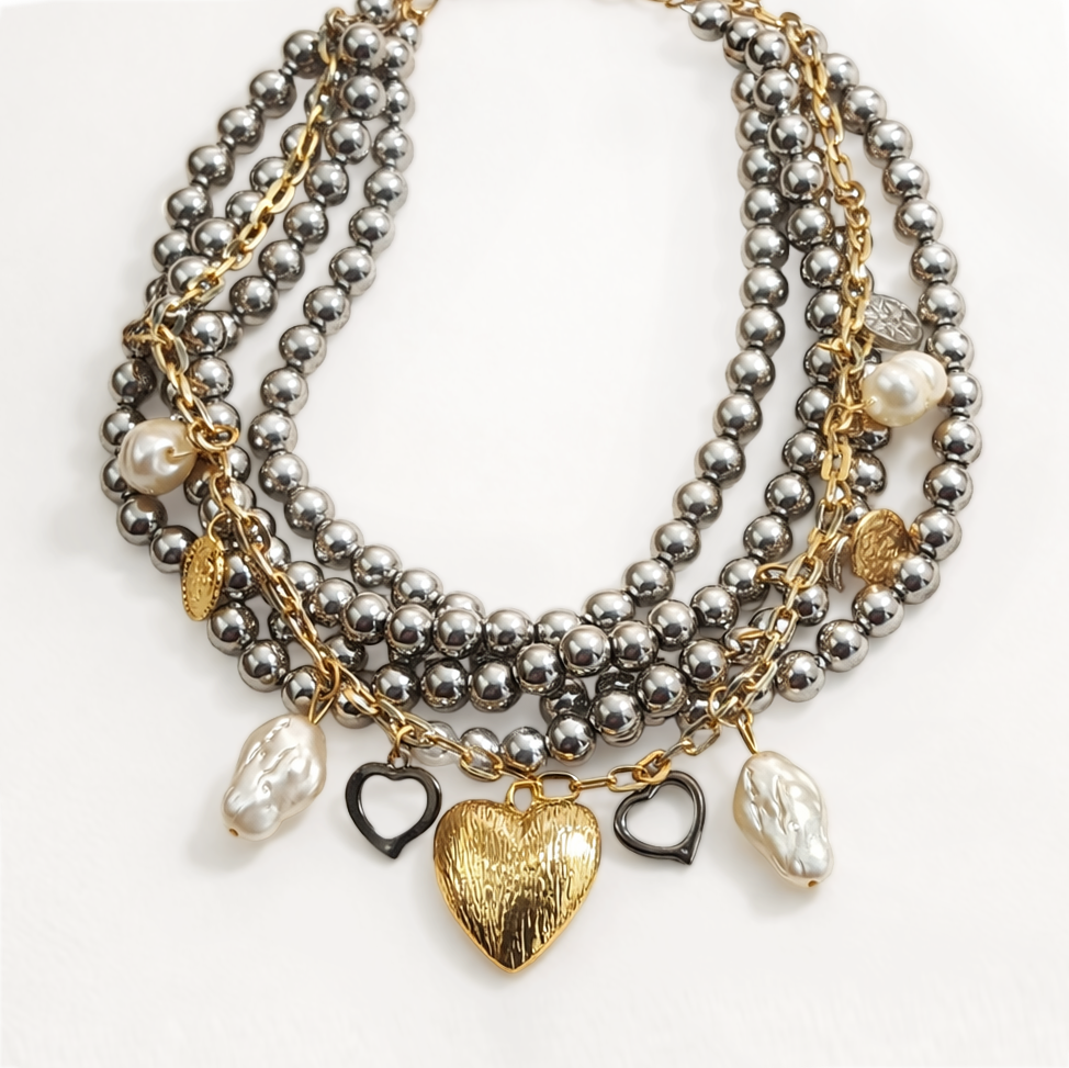 Mix de Banhos com: Colar Al Mare em metal, corrente elos com banho flash de ouro 18k e pérola ABS e Colar Life