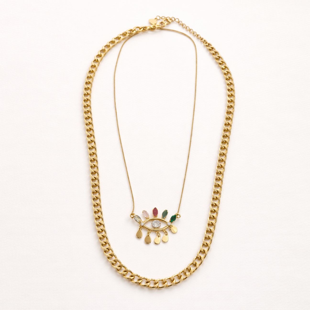 Mix de dois colares:Colar Talismã e Colar Grume,com banho de ouro com camada de 1 milésimo,
