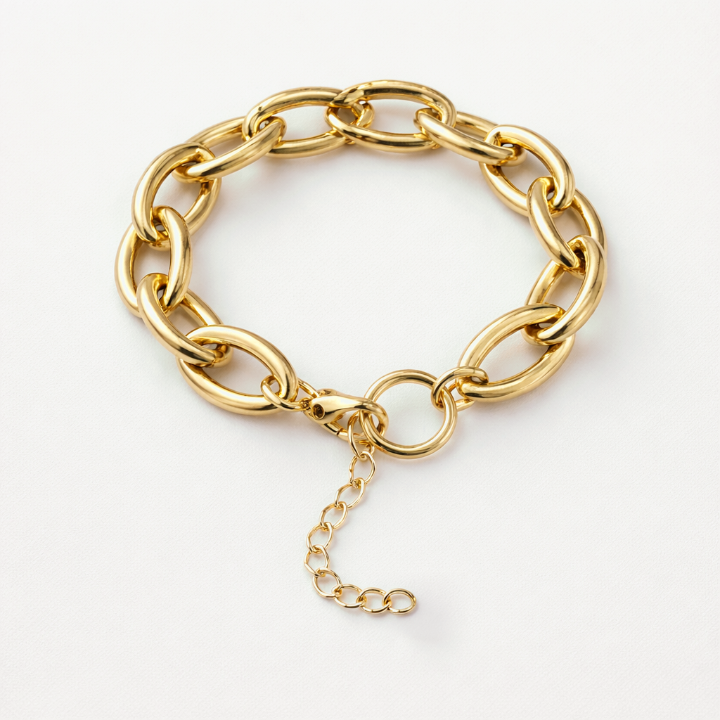 Pulseira confeccionado em metal, banho triplo de ouro e camada de verniz italiano que garante o brilho e hipoalergêrnico.